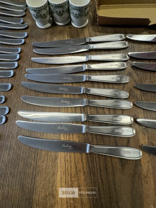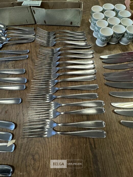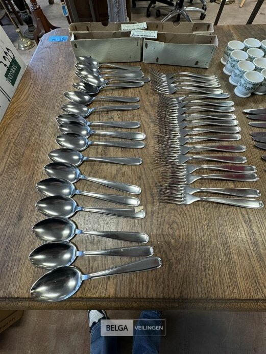 Bestek – Massief RVS – 17 lepels, 17 vorken, 17 messen, 12 eierschaaltjes