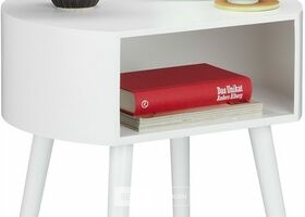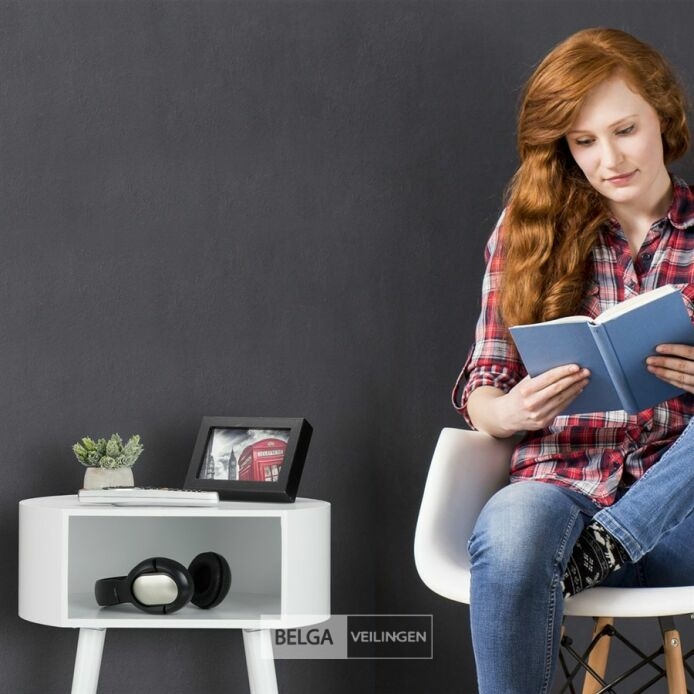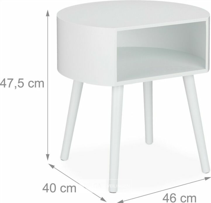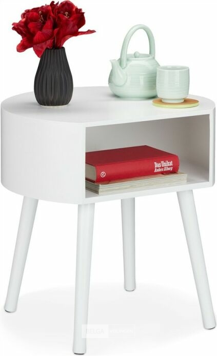 Houten design bijzettafel rond - met opbergruimte - modern - woonkamer - slaapkamer - wit-retour van relaxdays