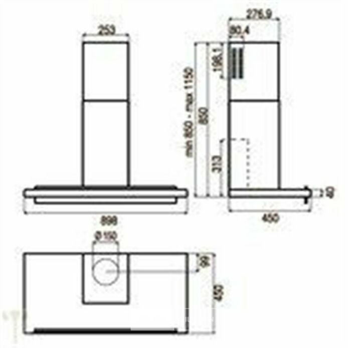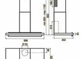 Afzuigkap,rvs/glas,90 cm,afzuigcap. 630 m³/uur