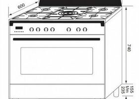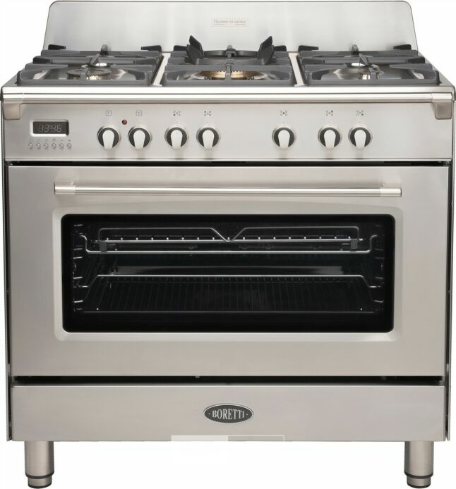 Fornuis,gas,5 branders,gietijzeren roosters,1 oven,inox (winkelprijs 2699 euro)