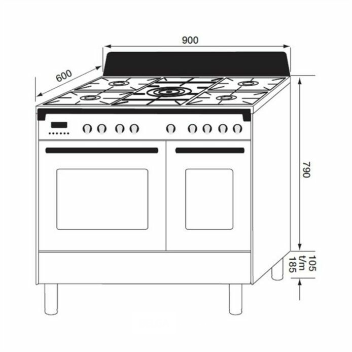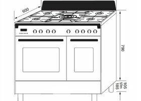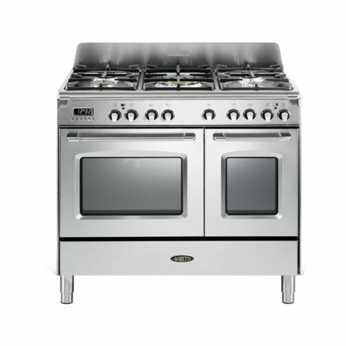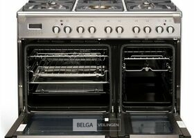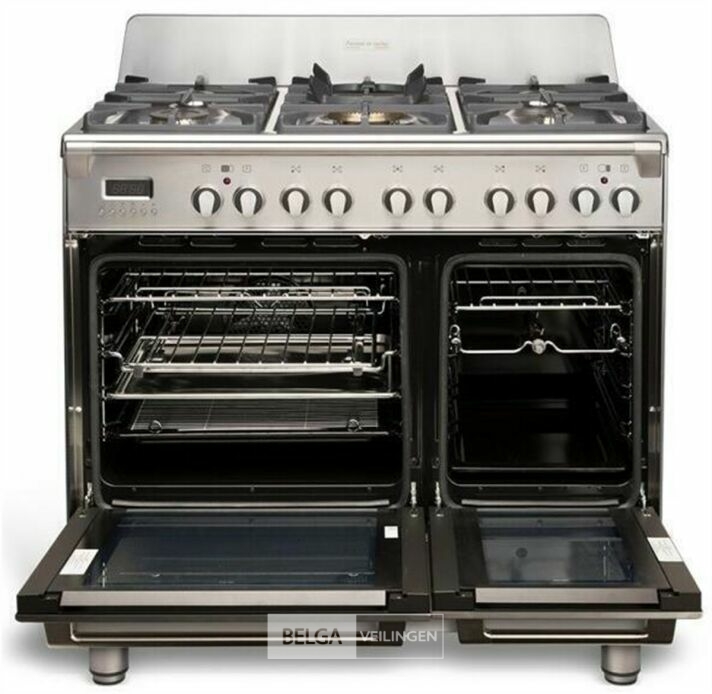 Fornuis,gas,5 branders,gietijzeren roosters,2 ovens,inox (winkelprijs 2999 euro)