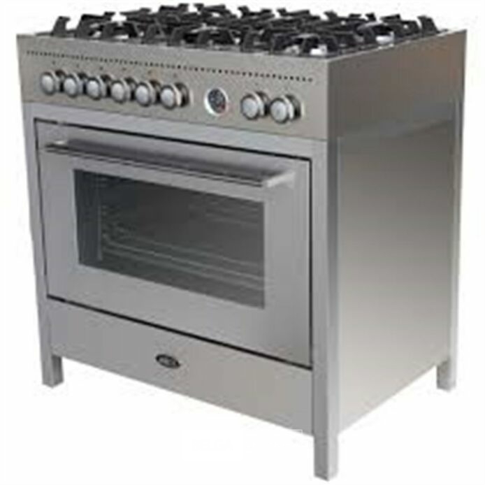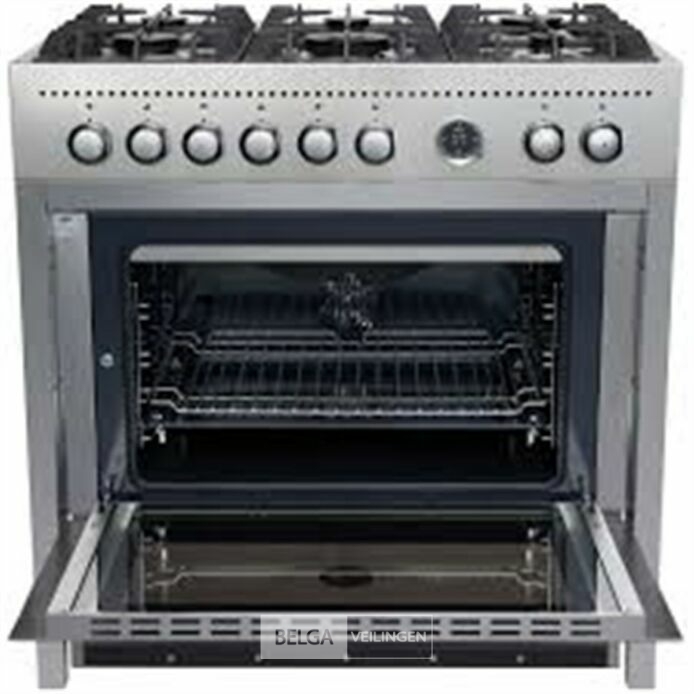 Fornuis,gas,90 cm,6 branders,1 oven,Inox,gietijzeren pannendragers