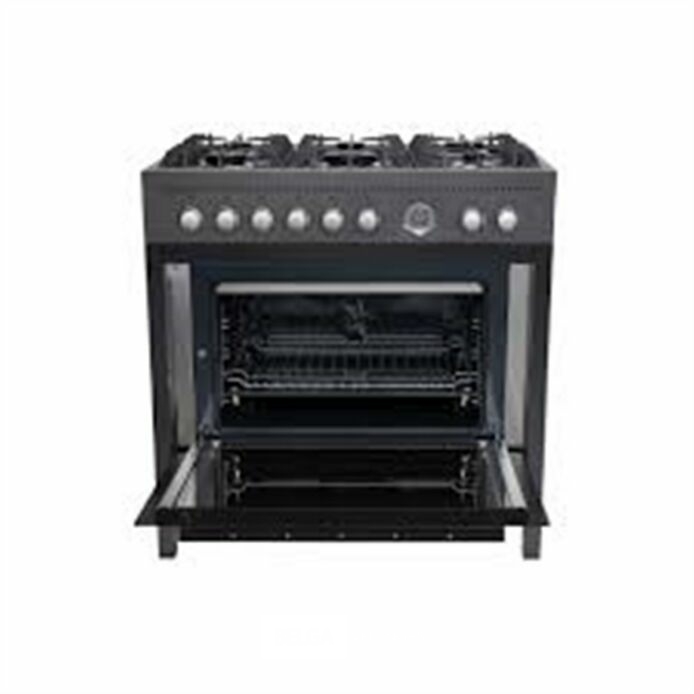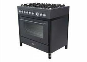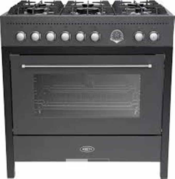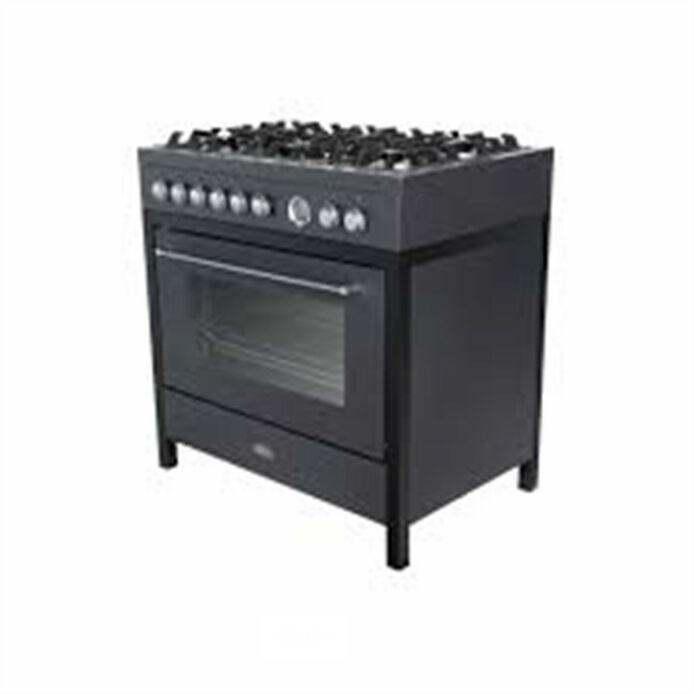 Fornuis,gas,90 cm,6 branders,1 oven,mat zwart,gietijzeren pannendragers