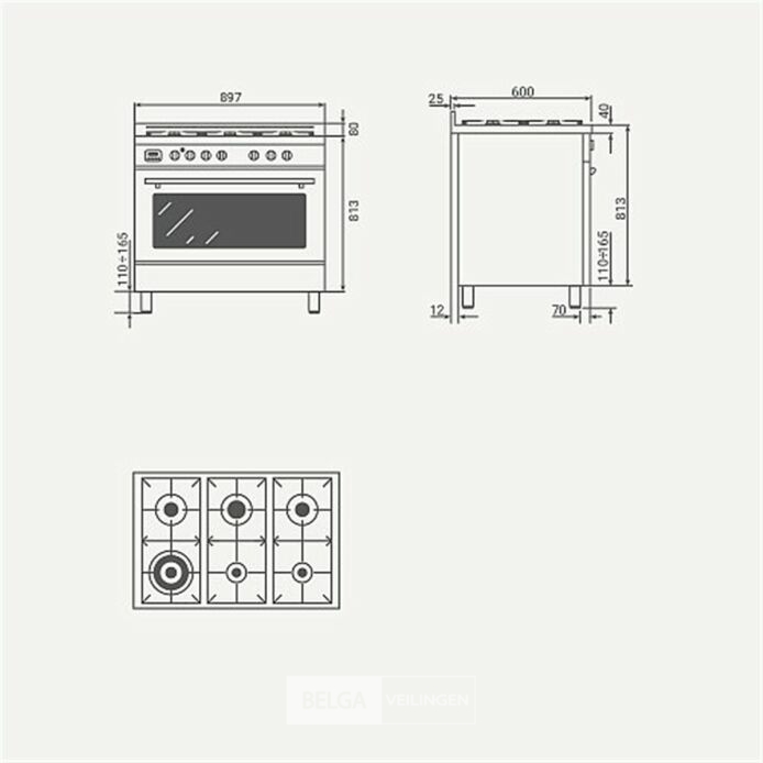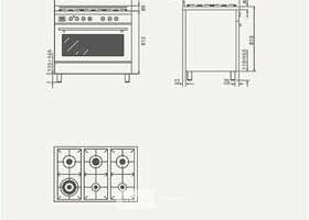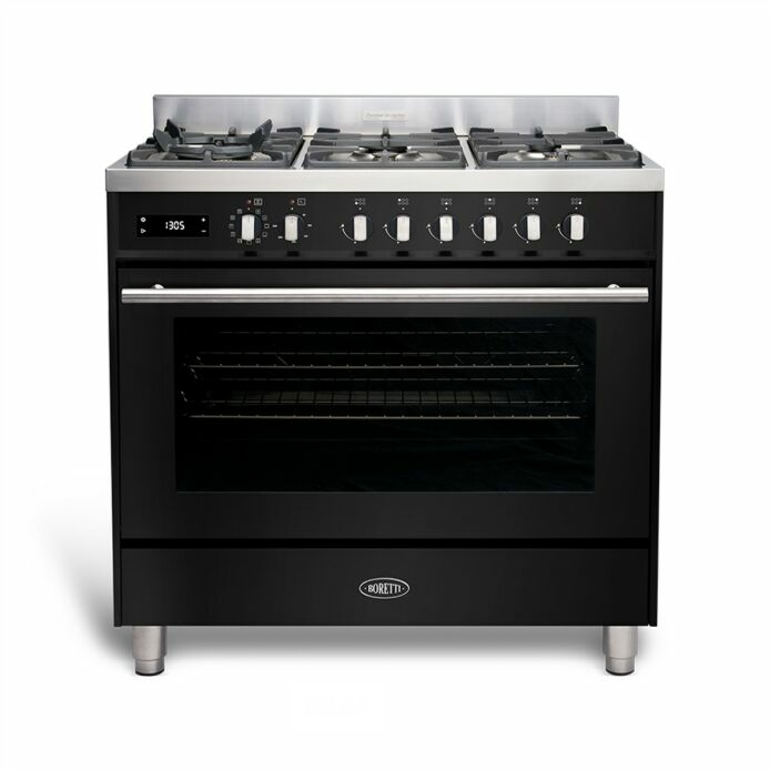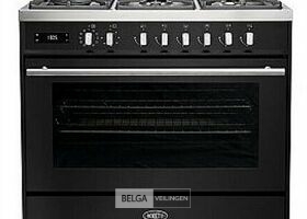 Fornuis,gas,6 branders,gietijzeren roosters,1 oven,zwart (winkelprijs 3599 euro)