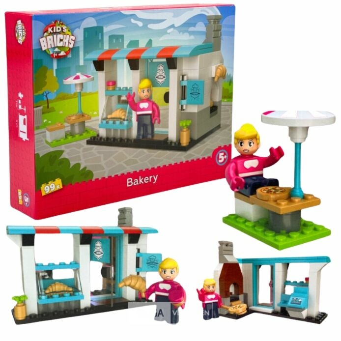 Bouwstenen set van Kids Bricks uit de serie Bakkerij. De set is 99-delig.compatibel met lego