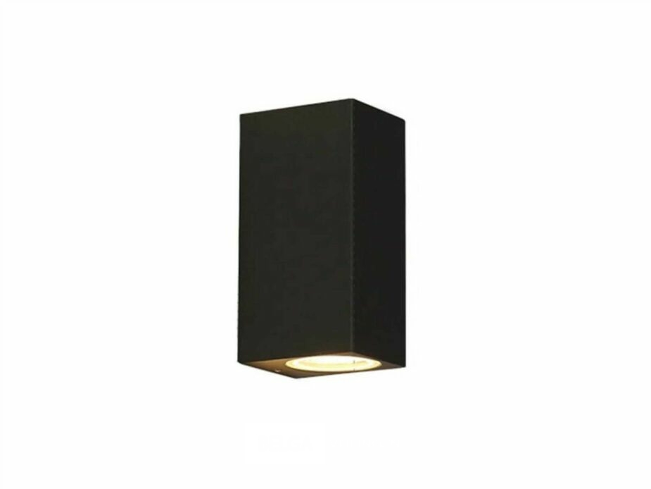 10 x Buitenwandlamp GU10 Fitting rechthoek dubbele stroom – Waterdicht (IP65) – PC en gehard glas – Afmetingen: 80 x 80 x 150 mm – DouillE: GU10 – Lamp niet inbegrepen – Inclusief bevestiging – Geschikt voor gebruik binnen en buiten.