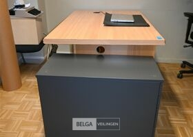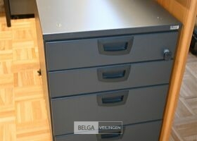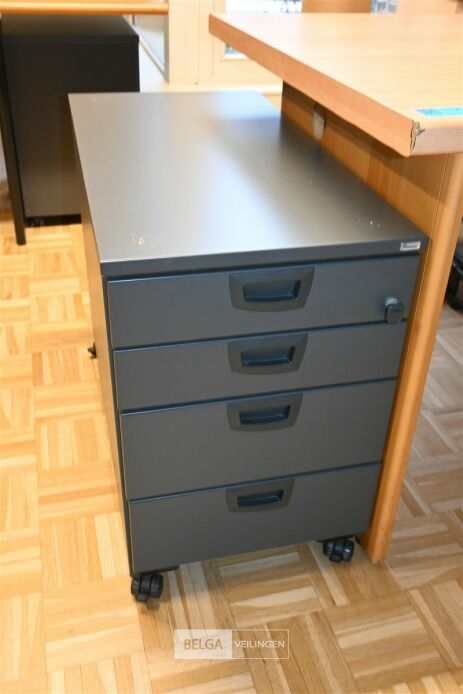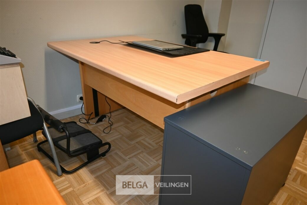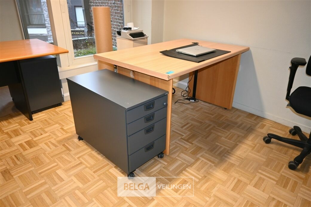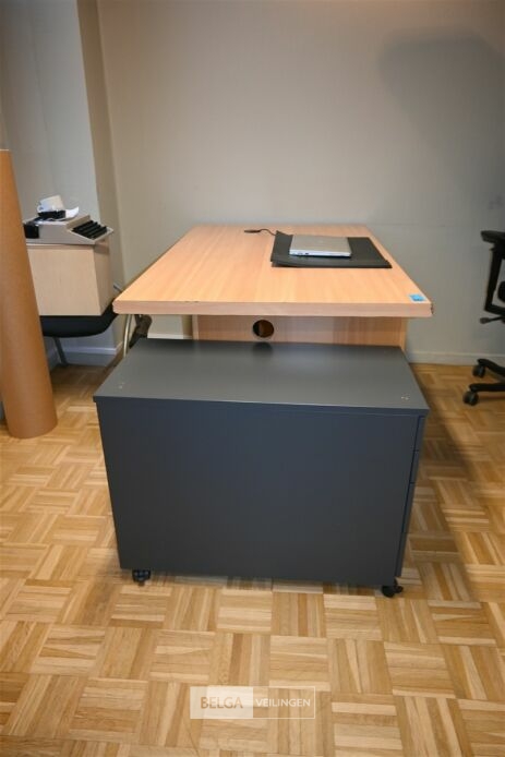 Bureau (afm 142x90x77cm) + ladeblok. Opgelet! Dit lot bevindt zich op de eerste verdieping en dient door de koper zelf naar beneden te worden gebracht.
