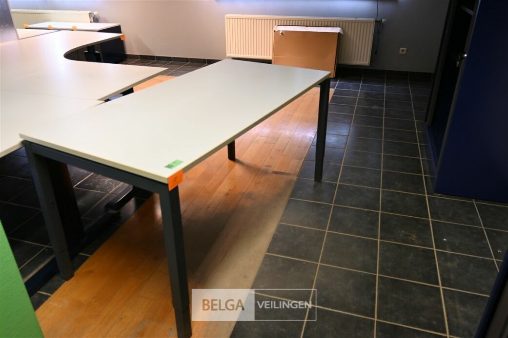 Bureau tafel: Lichtgrijsblad met donkergrijze poten afm 180 x 80 x 80 cm, mechanisch in hoogte verstelbaar