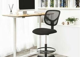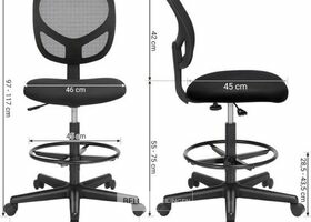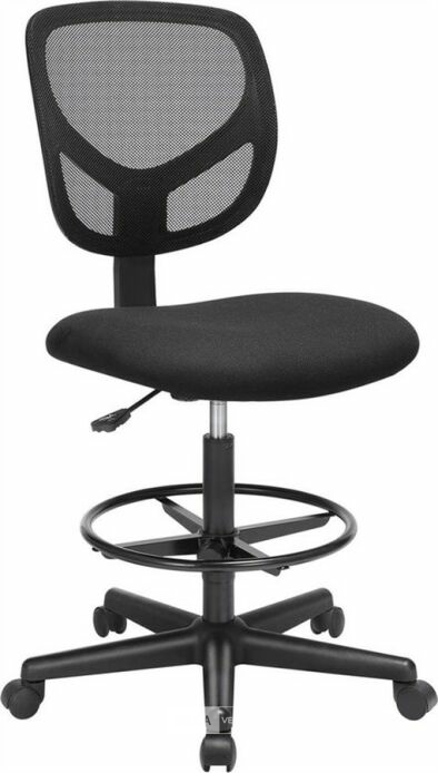 Bureaustoel, ergonomische werkkruk, zithoogte 51,5-71,5 cm, hoge werkstoel met verstelbare voetenring, draagvermogen 120 kg, zwart OBN15BK