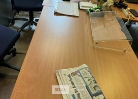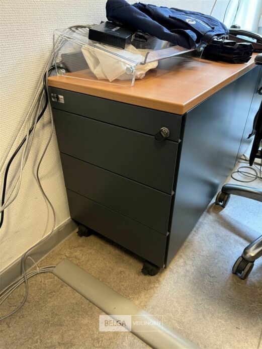 Bureel: 3x buro B120 x D80 x H75 cm + 1x ladenblok B43 x D80 x H58 cm + 3x burostoel (zonder spullen erop of erin) - locatie verdiep 1