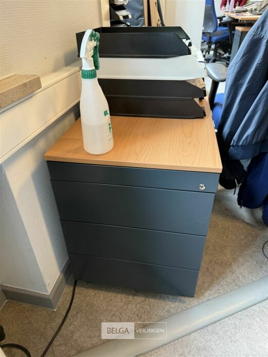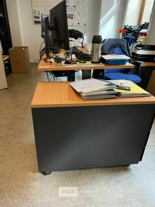 Bureel: 2x buro B140 x D80 x H74 cm + 3x ladenblokken B43 x D80 x H62 cm + 2x burostoel (zonder spullen erop of erin) - locatie verdiep 1