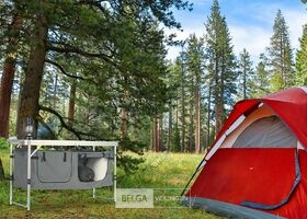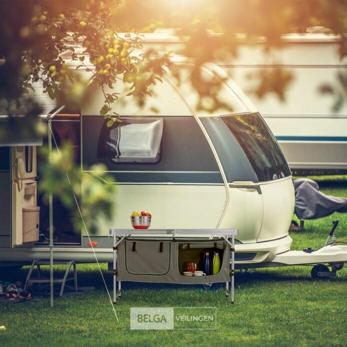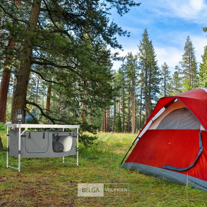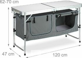 Handige campingtafel/kast -alluminium lichtgewicht en zeer functioneel afm 120x47x70cm