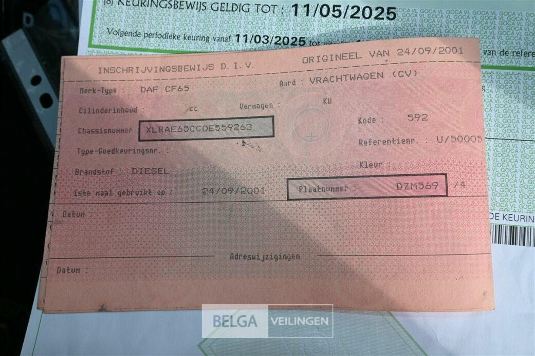 DAF CF65 veegwagen/vrachtwagen met ITM opbouw, chassisnummer XLRAE65CC0E559263, bouwjaar 2001, 115.112km, diesel, sleutel en boordpapieren (inschrijvingsbewijs, gelijkvormigheidsattest, keuringsbewijs en identificatieverslag) aanwezig, start en rijdt, dit voertuig kan geïnspecteerd worden tijdens de kijkdag, dit voertuig heeft mogelijk een platte batterij, de koper dient zelf te voorzien in startmiddelen