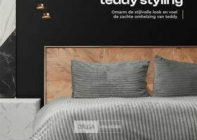 Dekbed overtrek winter wollig Rib Teddy grijs-240x200cm +2 kussenslopen 60x70cm - lekker warm wollig winter dekbed