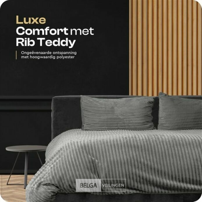 Dekbed overtrek winter wollig Rib Teddy grijs-240x200cm +2 kussenslopen 60x70cm - lekker warm wollig winter dekbed