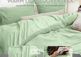 Dekbed overtrek winter wollig Teddy licht Groen-240x200cm +2 kussenslopen 60x70cm - lekker warm wollig winter dekbed
