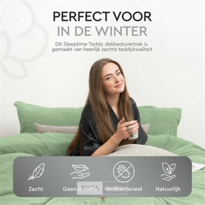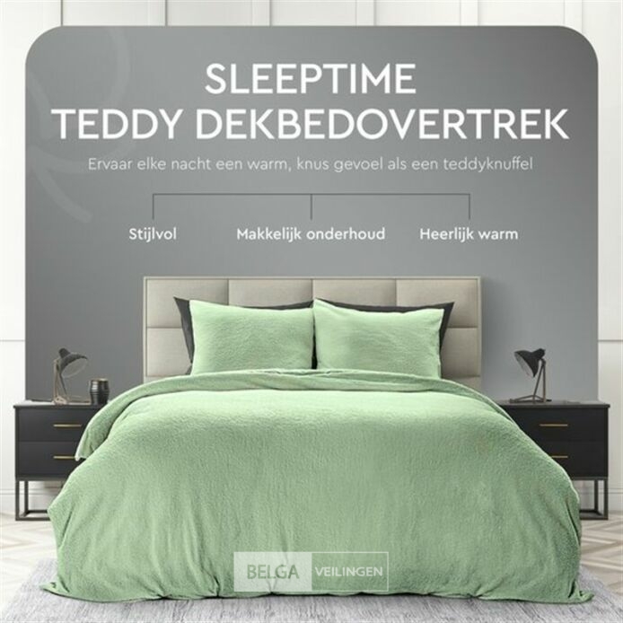 Dekbed overtrek winter wollig Teddy licht Groen-240x200cm +2 kussenslopen 60x70cm - lekker warm wollig winter dekbed