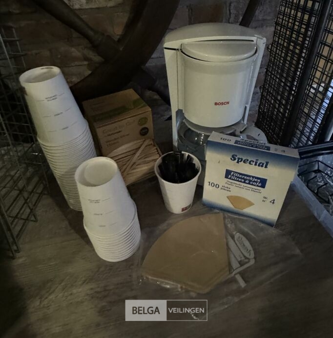 Diverse accessoires o.a: spiegel, buste, koffiezetapparaat incl bijhorigheden, winkelmandjes