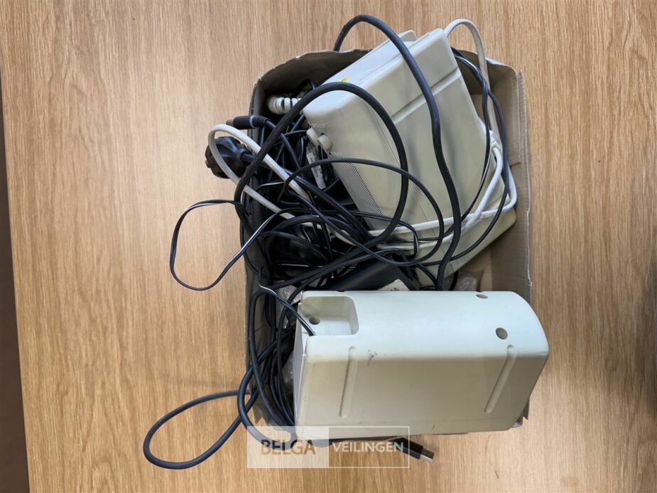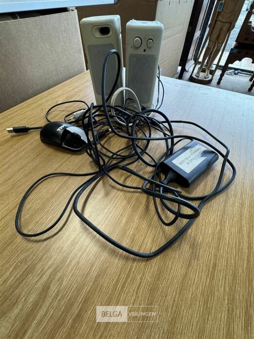 Diverse artikelen o.a.: doos met schaartjes, telefoonbeantwoorder (werking: onbekend), Computerboxen (werking: onbekend)
