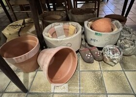 Diverse bloempotten inclusief houten klompen