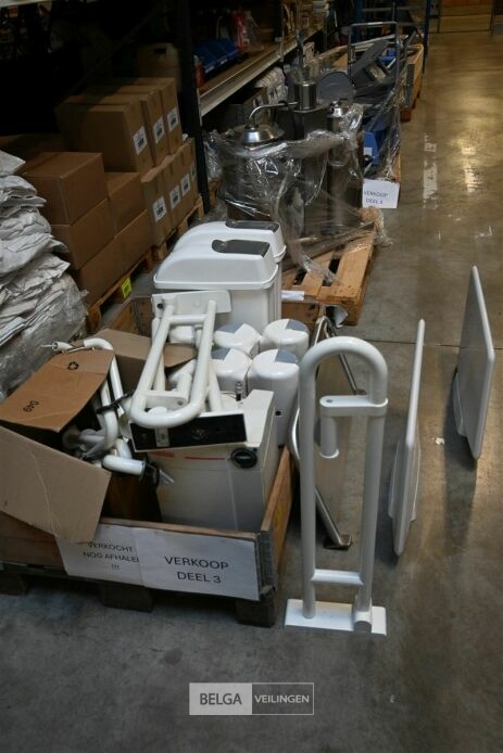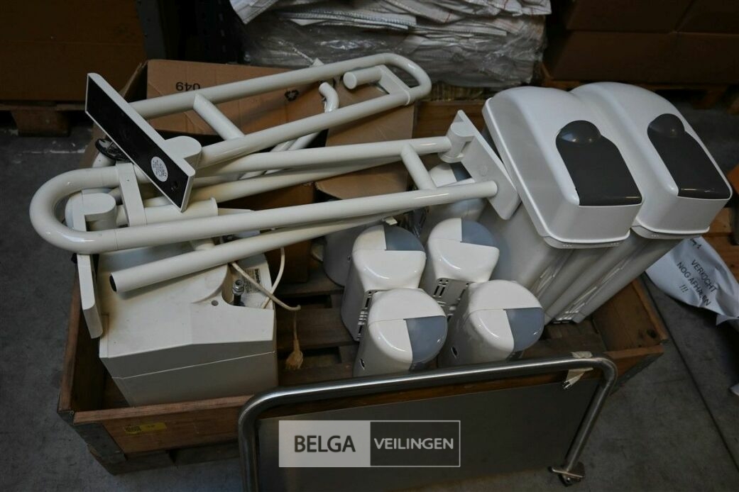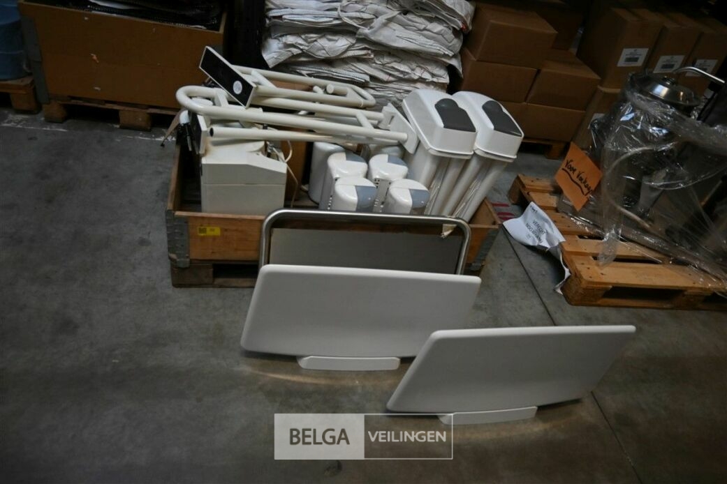 Diverse toiletartikelen, 2 Hygiëne vuilbakjes, 8 WC rolhouders, 4 Toilethandgrepen voor mindervaliden, 4 Inox houders voor hygiënedoekjes, 3 scheidingsplaten voor urionoirs waarvan 1 inox en 2 PVC., elektrisch boiler INVENTUM, type EDR10, 10 Ltr, 2Kw