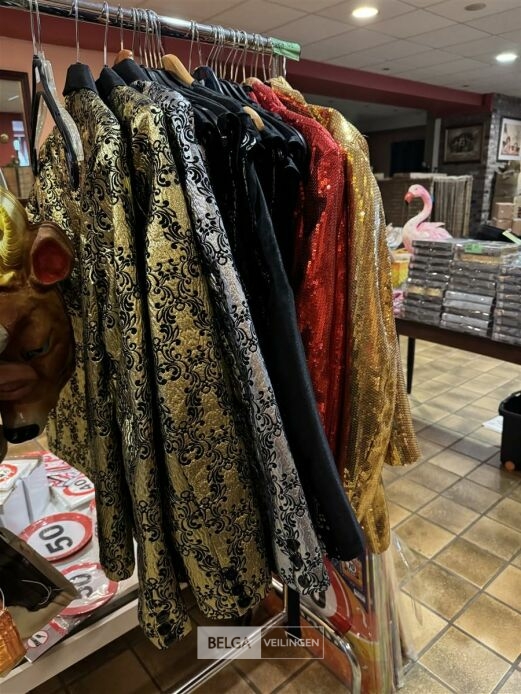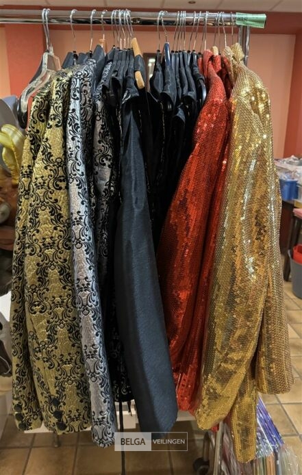 Diverse verkleedkledij - Gouden vest met decoratie maat S en M / zilveren vest met decoratie S en M / gouden glitter vest S en XL / rode glitter vest S, XL en 2 L / gouden gilet met decoratie 3 XL, 1S, 1M, 1XS / zilveren gilet met decoratie 2XL, 4M, 1XS