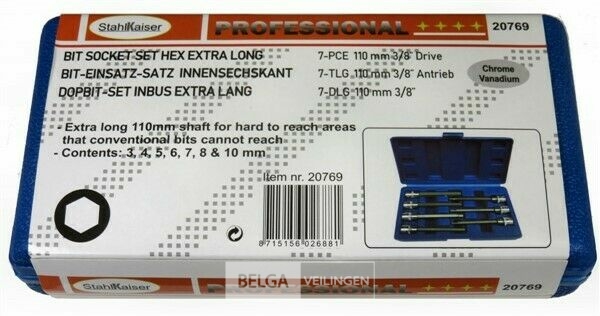 Dopbit-set lange inbus 7 dlg 3/8'' 3-10mm - nieuw en ongebruikt