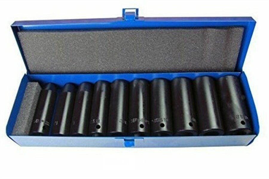 Professionele Kracht doppen set lang 1/2'' 10 dlg-zeer geschikt voor machine gebruik en of handmatig-metalen opbergkist