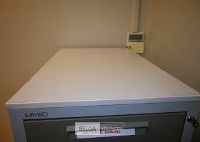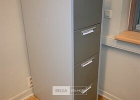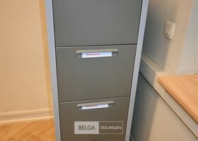 Dossierkast met 4 lades, afm 71x47x138cm. Opgelet! Dit lot bevindt zich op de eerste verdieping en dient door de koper zelf naar beneden te worden gebracht.