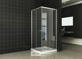 De douchecabine is gemaakt van gehard veiligheidsglas. De dubbele schuifdeuren zorgen ervoor dat de cabine zelfs voor een kleine badkamer geschikt is. Exclusief spoelbak/bodem, 80x190cm