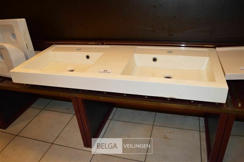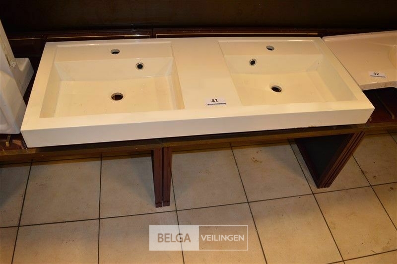 Dubbele lavabo wit kunststof L120 x B48 cm - naamloos
