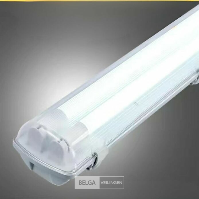 16 x Dual TL armatuur 120cm – IP65 Waterdicht – Dubbel frame voor fluorescen buizenTs – Lengte: 120 cm – Compatibel met standaard TL-buizen (niet inbegrepen) – Beschermingsgraad: IP65 (waterdicht, volledig beschermd tegen stof en waterstralen) – Geschikt voor gebruik binnen en buiten – Afmetingen: 1276 x 86 x 55 mm – Wordt geleverd met montageset voor eenvoudige installatie – Ideaal voor omgevingen waar betrouwbare verlichting vereist is.