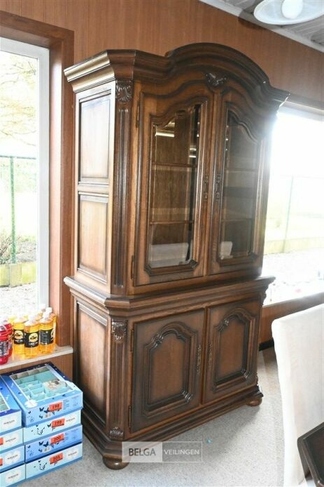 eetkamer dressoir ± 246x65x210 vitrinekast ± 59x127x20 tafel ± 200x90x79 en 6 stoelen
