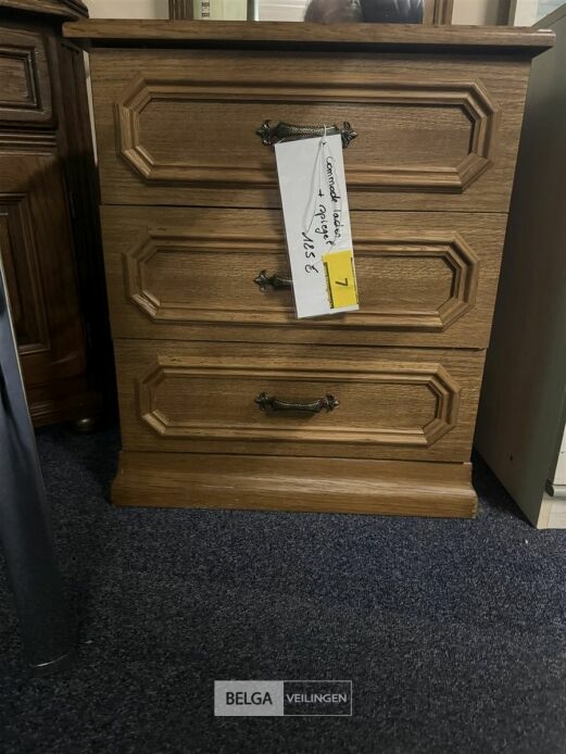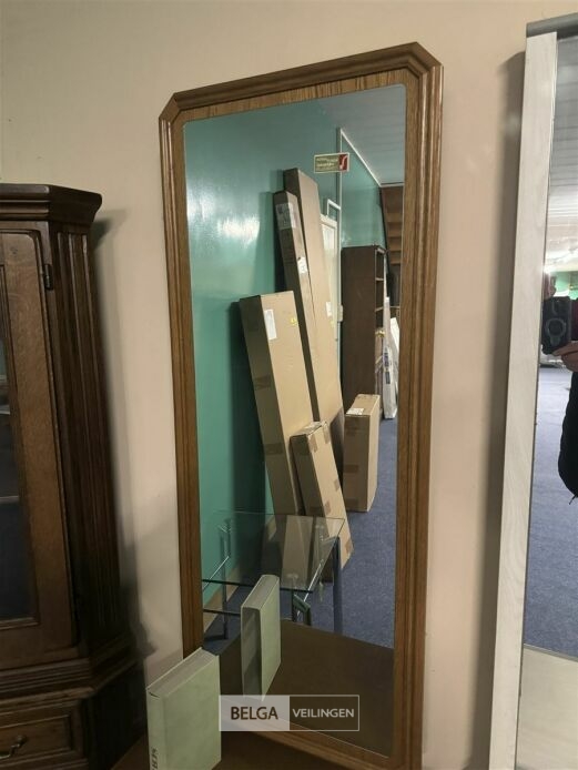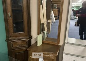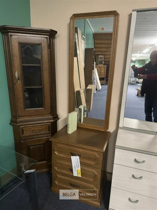 Eiken commode met spiegel en 3 lades, spiegel H118 x B48 cm, commode H65 x B56 x D41 cm