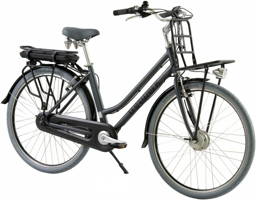 Demomodel winkelwaarde 1499 euro -4 maand gebruikt voor proefritten 100% in orde -Dames 7V V-Brakes Antraciet-Cargo transportfiets mt 50 ! 25km/uur Een 28 inch e-bike met alle ruimte voor jouw bagage zowel voorop als achterop.-