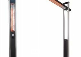 Elektrische Patio heater: afm : 53 x 33 x 202 cm - Gewicht : 23.4 kg - Verwarmingsvermogen: 2200 W, lichtvermogen - Verwarmingsoppervlak: 20 m² - Verwarmingselement: 1 koolstofvezelbuis - Aluminium steun en reflector - Roestvrijstalen beschermkappen - Staal met gepoedercoat paneel - Gemakkelijk te verplaatsen, met 2 wielen in de voet - 1,8 meter lange kabel