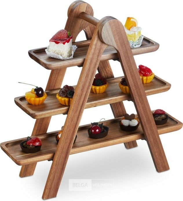 etagère hout - 3 laags - inklapbaar -38 x 41 x 15 cm-zeer decoratief en eyecatcher -makkelijk te reinigen-retouren van Relaxdays