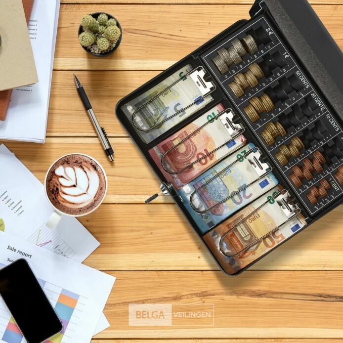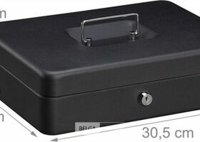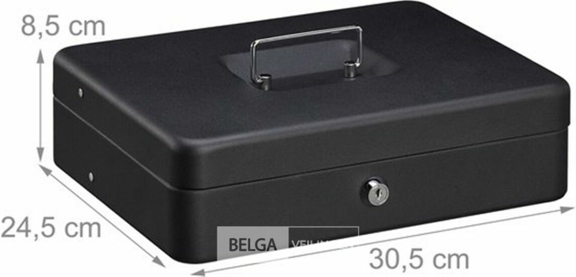 geldkistje met slot voor euro munten en briefjes - met sleutel - ijzer - 8,5 x 30,5 x 24,5 cm - geldkluis - zwart-retouren van Relaxdays