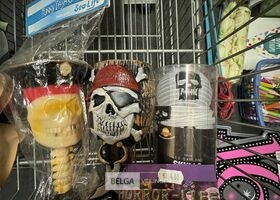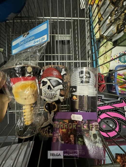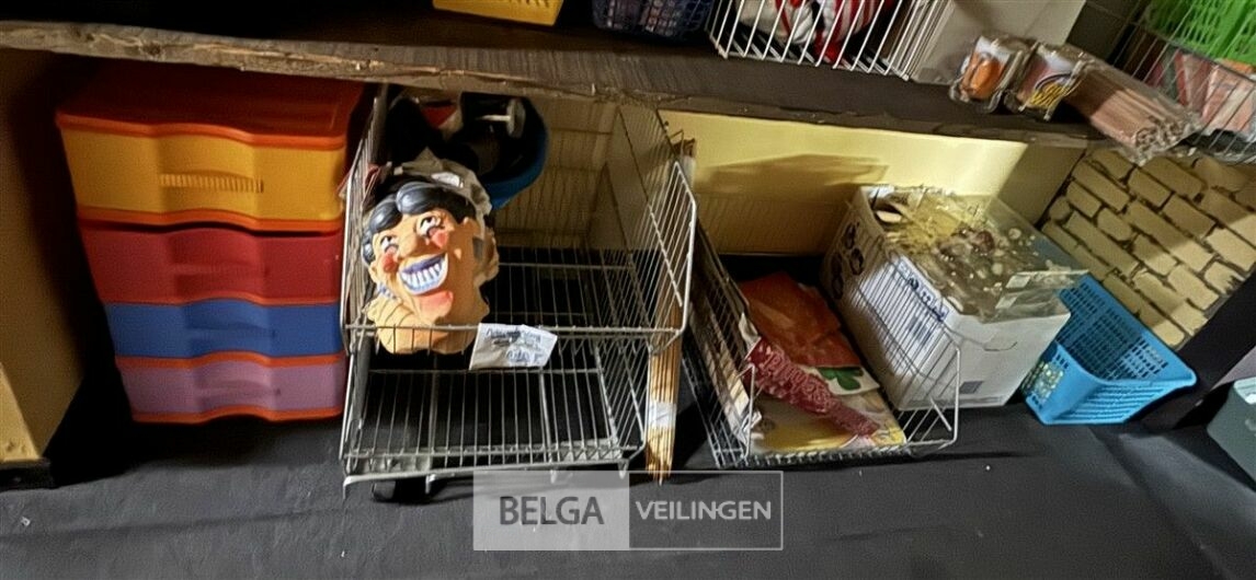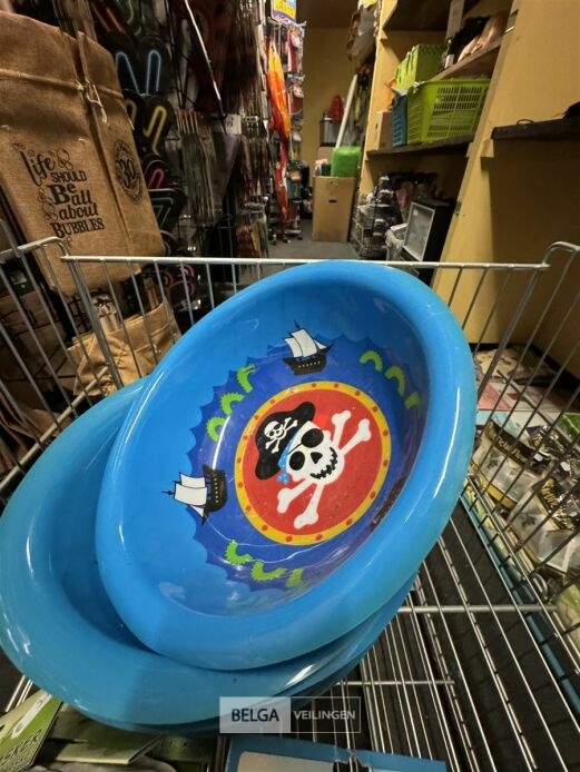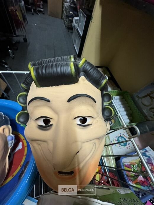 Feestartikelen divers maskers, plastieke kommen, (iExcl ijzeren rekken niet inbegrepen )