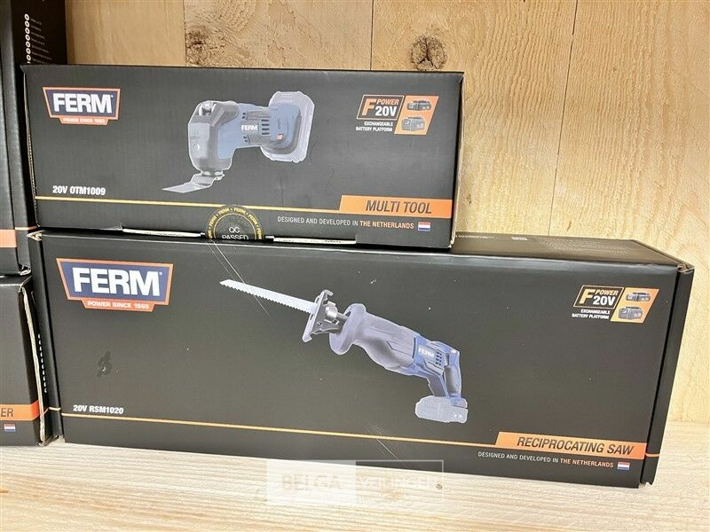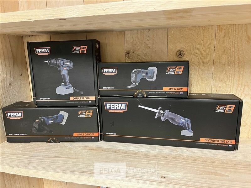 Bestaande uit slijptol, reciprozaaf, schroefmachine, multi tool, accu lader en 4 accu´s