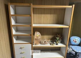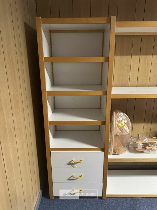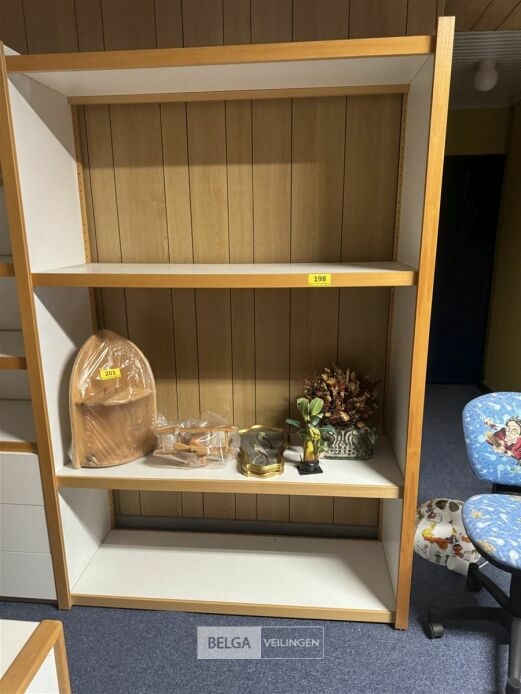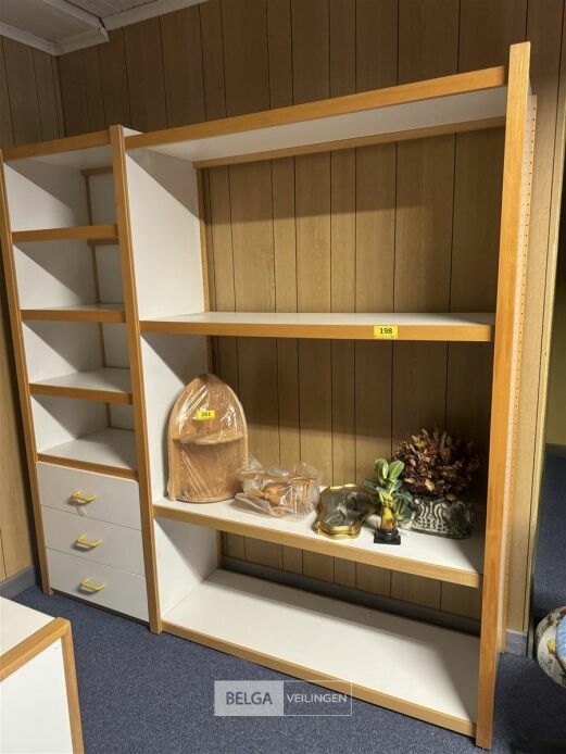 Fineer houten bureel wit L122xB55xH69 cm + houten rek H198xB198xD44 cm