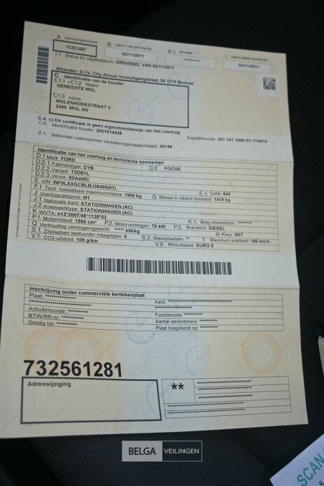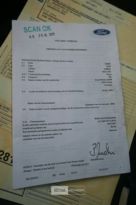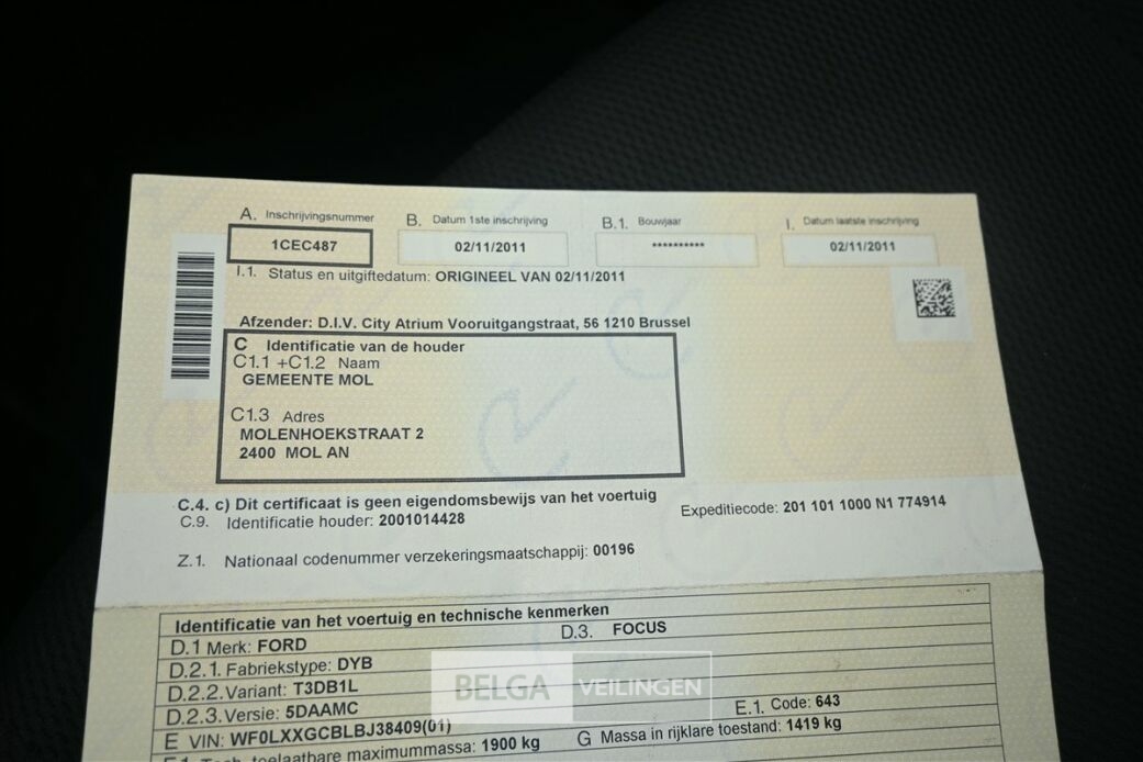 Ford Focus DYB, Km stand 77437Km, Chassisnummer: WFOLXXGCBLBJ38409(01); Eur5, 70 Kw, 6 versnellingen, bouwjaar 2011, alle boorddocumenten en sleutels aanwezig. De aangeboden goederen zijn niet onderzocht op gebreken en niet getest op werking. Maak gebruik van het kijkmoment om u te voorzien van de nodige indrukken, Artikelen met een batterij (voertuigen, machines, e.d.) hebben mogelijk een platte batterij.