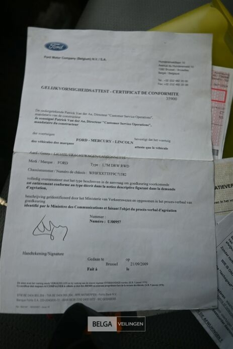 Lichte vrachtwagen Ford Transit, Diesel, Chassisnummer: WF0FXXTTFF9C71582/83, 2402 CC, 85Kw, 136.731 Km, Eur4, ttm 3500Kg, massa 1867Kg, bouwjaar 2009. De aangeboden goederen zijn niet onderzocht op gebreken en niet getest op werking. Maak gebruik van het kijkmoment om u te voorzien van de nodige indrukken, Artikelen met een batterij (voertuigen, machines, e.d.) hebben mogelijk een platte batterij.