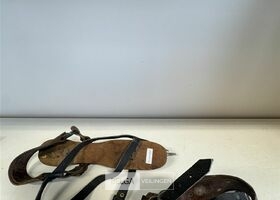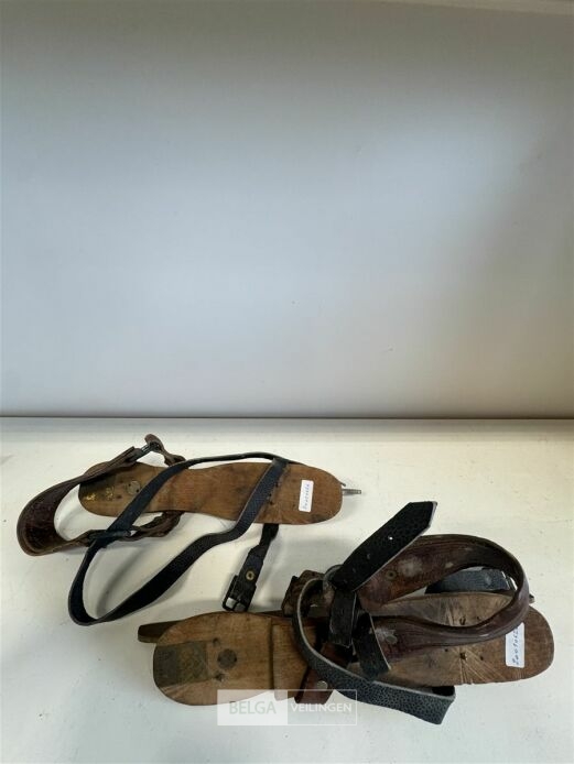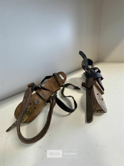 Friese doorlopers (schaatsen) met een houten voetstapel en een ijzeren blad – (afm. ± 27,50 cm x 6 cm)