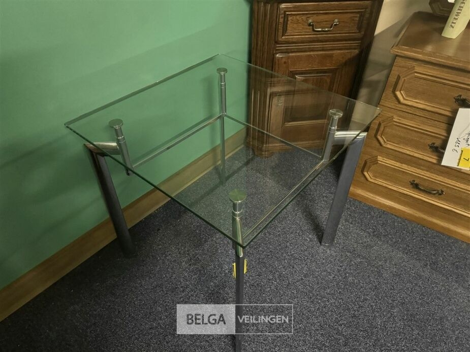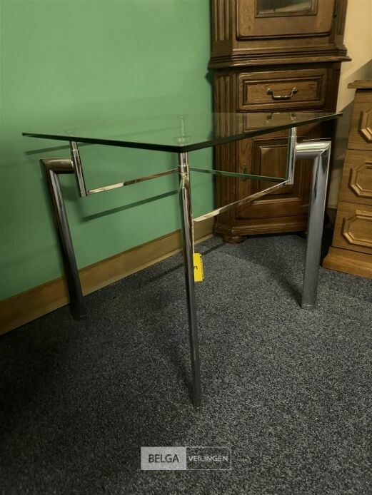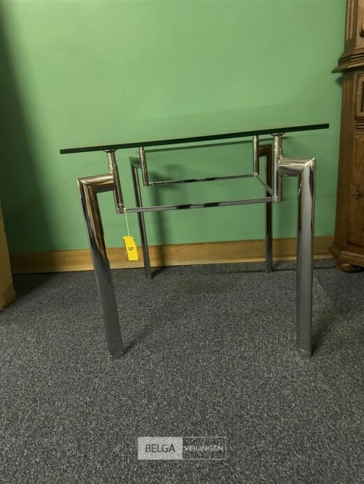 Glazen tafeltje met chromé onderstel, H57 x B57 x D57 cm