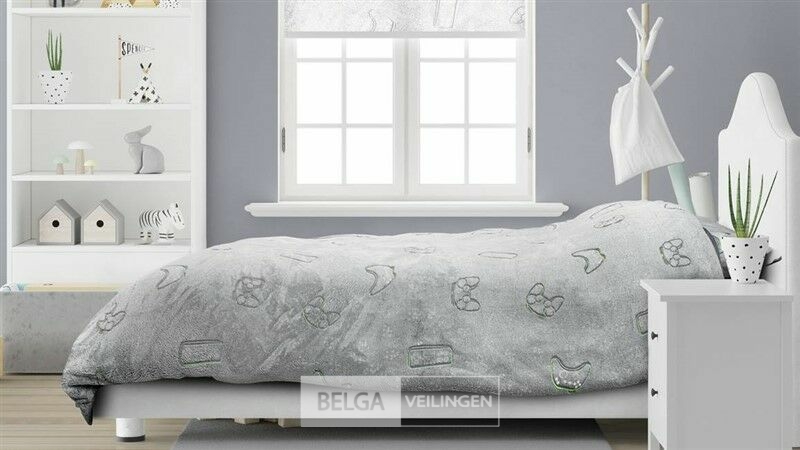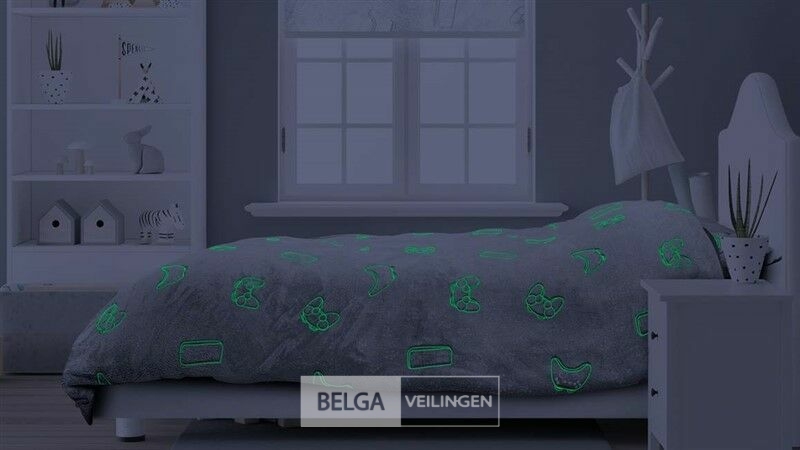 Sleeptime Glow in the dark Games dekbedovertrek 140x200cm+1kussensloop 60x70cm-Het Glow in the dark Games dekbedovertrek is een echte must-have voor de kleine gamer! Deze grijze print bevat allerlei leuke game-items. En wordt het donker in je slaapkamer, dan ontstaat er een stoer glow in the dark effect.