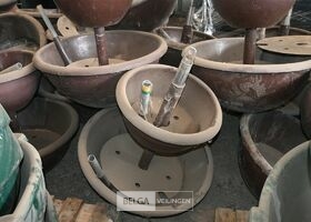 Grote partij bloembakken met circa 18 stuks uit 2 delen (36 halve) met diameter 87cm en circa 12 stuks met diameter 70cm en hoogte 100cm