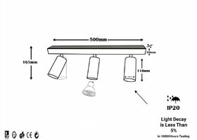 4 x GU10 Opbouwarmatuur – 3 draaibare spots – Kleur: Zwart – Fitting: GU10 – Afmetingen: 500 x 165 mm – Draaibaar: 350° rotatie / 70° helling – Materiaal: Hoogwaardig aluminium – Spanning: AC 85–265V (50/60Hz) – Beschermingsgraad: IP20 – Toepassing: Binnengebruik – Lampen: Niet inbegrepen – Inclusief montageset – Ideaal voor accent-, werk- of decoratieve verlichting – Lange levensduur en premium design.