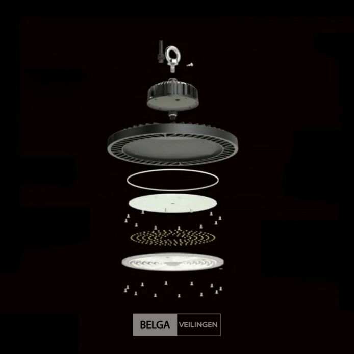 20 x Highbay UFO 100 Watt LED in PRO-ontwerp biedt hoge efficiëntie met 12.000 lumen bij 100 lumen per watt - Uitgerust met Professioneel LED voor superieure helderheid en betrouwbaarheid - Dimbaar met een schakelaar die 3 verschillende standen biedt: 60%/80%/100% vermogen - Aangedreven door een hoogwaardige Lifud-driver, die stabiele prestaties garandeert - Koud wit licht bij 6500K voor heldere, duidelijke verlichting - Waterdicht met een IP65-classificatie, ideaal voor zowel binnen- als buitengebruik - Afmetingen: Ø 260mm x 102mm voor eenvoudige installatie - Duurzame constructie van gegoten aluminium met een PC-lens, met een levensduur van 30.000 uur - 90° stralingshoek voor brede lichtdekking - Energiezuinig met een power factor >0,95 - Hoge CRI >80 voor nauwkeurige kleurweergave - Compatibel met 110-265V - Geleverd met 5 jaar garantie voor gemoedsrust - Weinig onderhoud door de lange levensduur - Efficiënte warmteafvoer voorkomt oververhitting - Milieuvriendelijk en kosteneffectief, verlaagt de energierekening - Biedt flikkervrij, stabiel licht.