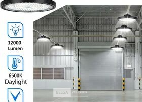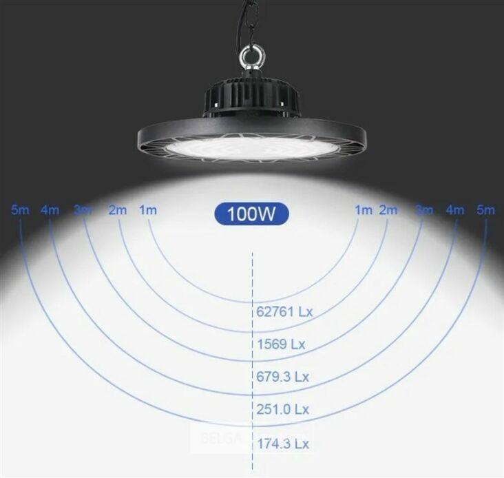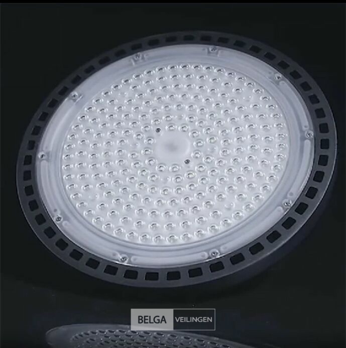 8 x Highbay UFO 100 Watt LED in PRO-ontwerp biedt hoge efficiëntie met 12.000 lumen bij 100 lumen per watt - Uitgerust met Professioneel LED voor superieure helderheid en betrouwbaarheid - Dimbaar met een schakelaar die 3 verschillende standen biedt: 60%/80%/100% vermogen - Aangedreven door een hoogwaardige Lifud-driver, die stabiele prestaties garandeert - Koud wit licht bij 6500K voor heldere, duidelijke verlichting - Waterdicht met een IP65-classificatie, ideaal voor zowel binnen- als buitengebruik - Afmetingen: Ø 260mm x 102mm voor eenvoudige installatie - Duurzame constructie van gegoten aluminium met een PC-lens, met een levensduur van 30.000 uur - 90° stralingshoek voor brede lichtdekking - Energiezuinig met een power factor >0,95 - Hoge CRI >80 voor nauwkeurige kleurweergave - Compatibel met 110-265V - Geleverd met 5 jaar garantie voor gemoedsrust - Weinig onderhoud door de lange levensduur - Efficiënte warmteafvoer voorkomt oververhitting - Milieuvriendelijk en kosteneffectief, verlaagt de energierekening - Biedt flikkervrij, stabiel licht.